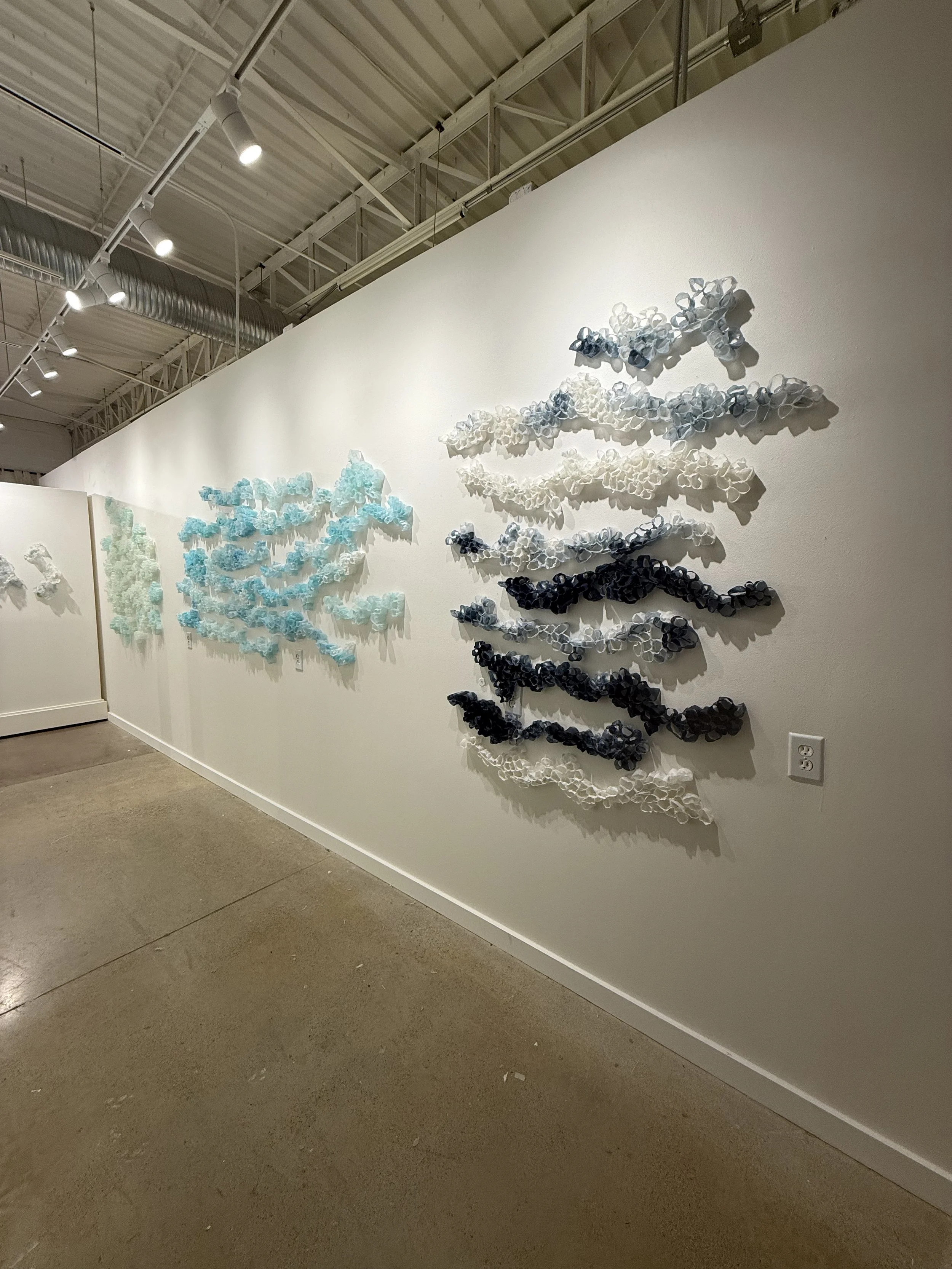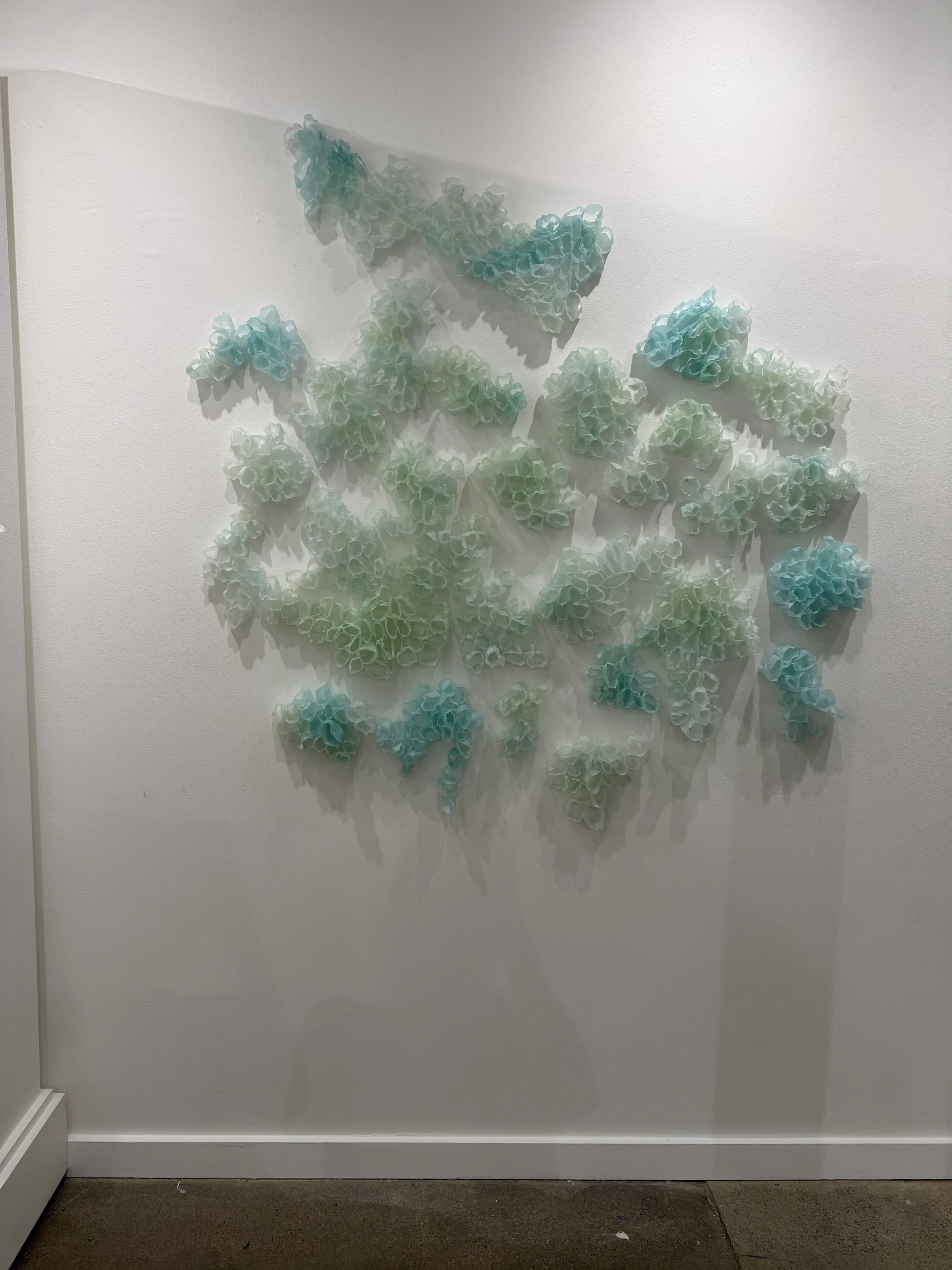 Soft clusters of translucent forms drift with shifting hues capturing the rhythm of the tide — a breath between water and light, calm, and motion. Currently on di